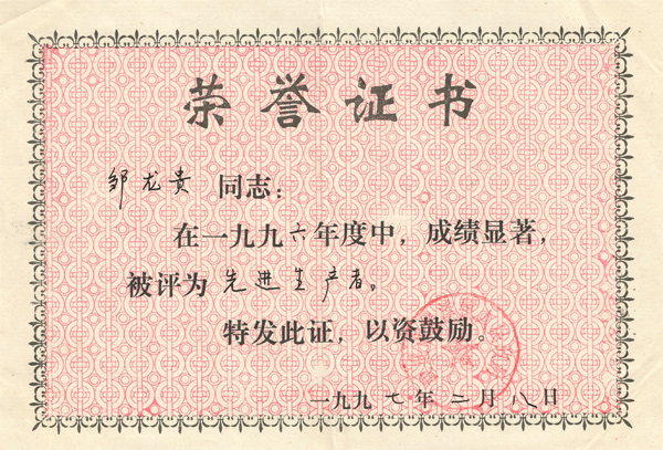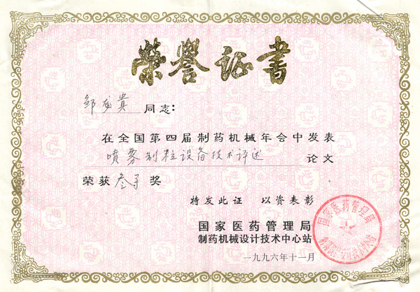 獲獎證書